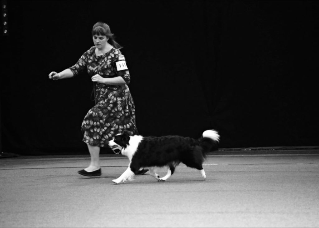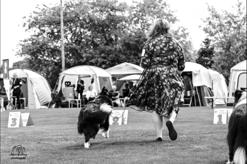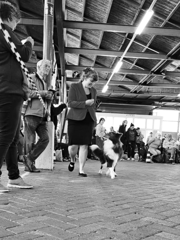 We begonnen te trainen, trainen en nog meer te trainen. Enkel door te oefenen om haar energie naar beneden te brengen. Simpelweg 𝐝𝐨𝐨𝐫 𝐡𝐞𝐭 𝐞𝐧𝐞𝐫𝐠𝐢𝐞𝐧𝐢𝐯𝐞𝐚𝐮 𝐯𝐚𝐧 𝐣𝐞 𝐡𝐨𝐧𝐝 (𝐞𝐧 𝐣𝐞𝐳𝐞𝐥𝐟) 𝐭𝐞 𝐥𝐞𝐫𝐞𝐧 𝐛𝐞𝐡𝐞𝐞𝐫𝐬𝐞𝐧, dit te bekrachtigen en onder commando te trainen konden we dit op die momenten inzetten. De mensen die met Border Collies werken weten hoe makkelijk trainbaar ze zijn, dus appeltje-eitje. We gebruikten de shows enkel als oefening om te kijken waar we stonden in ons trainingsproces. Wat een lol hadden we er samen in. Zo behaalde Lya in het begin heel weinig goede resultaten: meerdere lage kwalificaties en veel commentaar op haar ‘vrolijke’ staart. Na dit te trainen is het toch gelukt met haar, ze begon vanaf dat moment in de prijzen te vallen. Is ze Kampioen? Nee. Hebben we samen genoten van haar showcarrière? Ja, en dat doen we nog steeds. Want, met haar inmiddels bijna 11 jaar, vliegt ze nog met enorm veel plezier door de ring. Jong geleerd – oud gedaan.